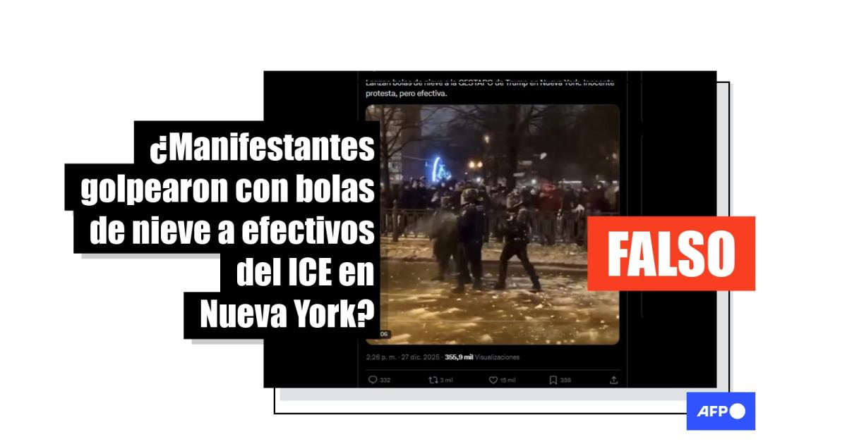En Nueva York, cientos de personas han participado en protestas contra las redadas a vendedores ambulantes realizadas por el Servicio de Inmigración y Control de Aduanas (ICE). En ese marco, un video que circula en redes sociales afirma mostrar a manifestantes en esa ciudad lanzando bolas de nieve a los agentes federales. Pero la grabación, compartida más de 3.000 veces desde diciembre de 2025, está tergiversada. En realidad fue hecha en Moscú, en 2021, durante protestas por el arresto de un líder opositor.