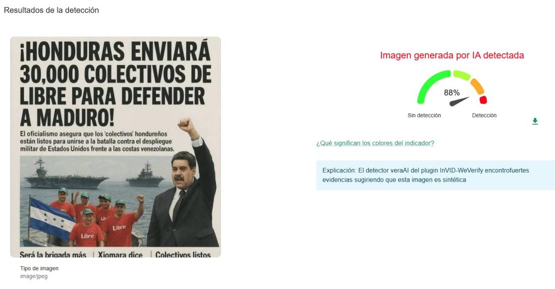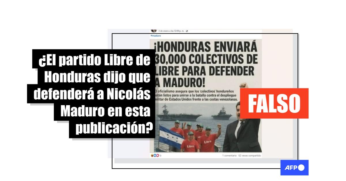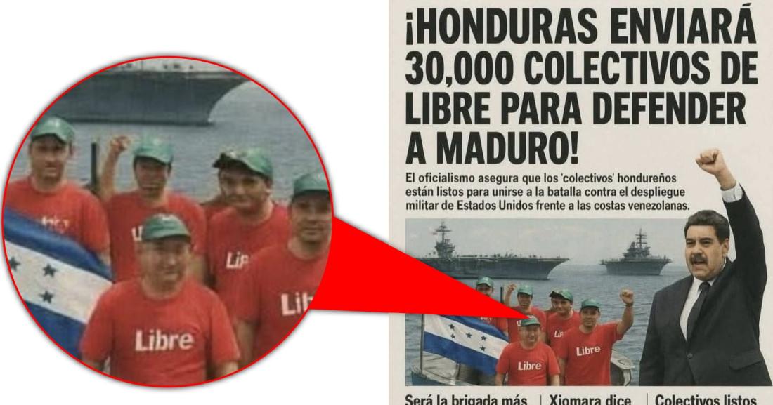 Tras la captura del presidente venezolano, Nicolás Maduro, por parte del gobierno estadounidense, la madrugada del 3 de enero de 2026, usuarios en redes sociales han compartido cientos de veces una supuesta portada de un diario de Honduras que reporta que el partido oficialista Libertad y Refundación (Libre) enviará a “30.000 colectivos” para defender al depuesto mandatario. Pero la imagen muestra indicios de haberse generado con inteligencia artificial (IA) y el movimiento no ha hecho pronunciamientos en ese sentido.
