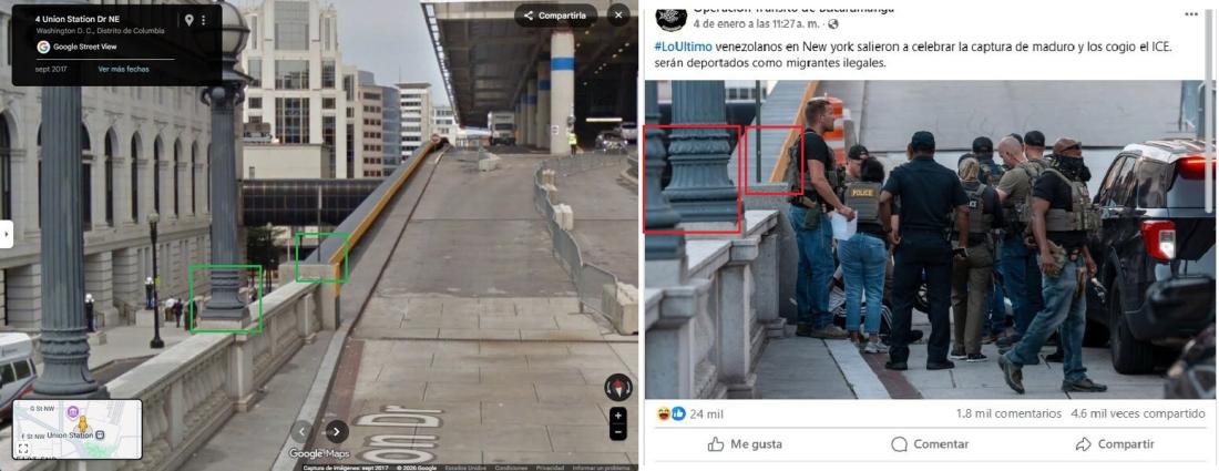 Tras 13 años al mando de Venezuela, Nicolás Maduro fue derrocado por fuerzas estadounidenses la madrugada del 3 de enero de 2026. Su captura provocó una ola de celebraciones entre la comunidad venezolana en las calles de Estados Unidos. Al día siguiente, comenzó a circular en redes sociales una foto de agentes del Servicio de Inmigración y Control de Aduanas (ICE, por sus siglas en inglés) supuestamente deteniendo a venezolanos que festejaron en Nueva York. Pero la imagen, compartida más de 10.000 veces, en realidad muestra el arresto de un repartidor en Washington D.C., en agosto de 2025.