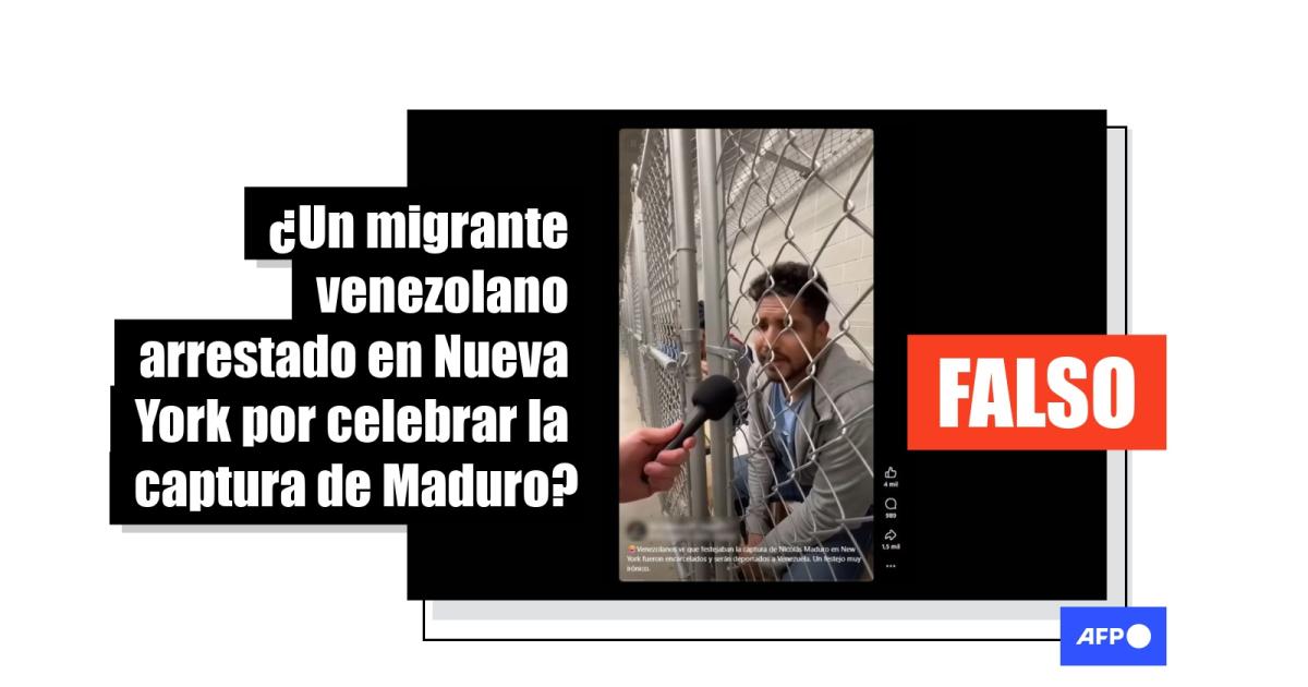 “Venezolanos que festejaban la captura de Nicolás Maduro en New York fueron encarcelados y serán deportados a Venezuela. Un festejo muy irónico”, dicen las publicaciones que comparten el video en Facebook (1, 2), TikTok (1, 2), X, YouTube y Threads.