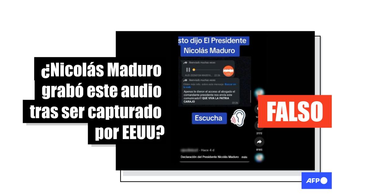El depuesto presidente venezolano, Nicolás Maduro, fue llevado ante un tribunal de Nueva York para responder por cargos de narcotráfico y terrorismo luego de haber sido capturado en Caracas el 3 de enero de 2026. En ese contexto, usuarios en redes sociales han compartido un audio supuestamente grabado por el mandatario y difundido por su abogado, en el que dice que fue “secuestrado por el poder imperial”. Sin embargo, la secuencia, compartida más de 8.000 veces, tiene indicios de haber sido generada con inteligencia artificial (IA), indicó un experto a la AFP.