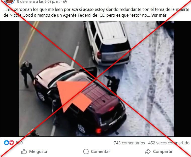 Luego de que un agente del Servicio de Inmigración y Control de Aduanas (ICE, por sus siglas en inglés) disparara fatalmente contra una mujer en Minnesota, el 7 de enero de 2026, varios funcionarios de la administración federal, incluido el presidente Donald Trump, defienden la intervención del policía. En ese contexto, usuarios en redes sociales han difundido más de 1.000 veces una imagen que pretende respaldar las afirmaciones de que el agente actuó en defensa propia al ser embestido por un automóvil. Sin embargo, la imagen fue generada por inteligencia artificial.