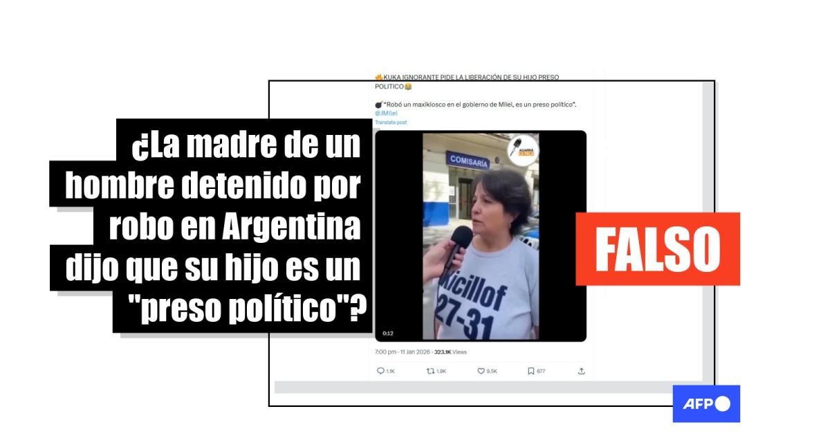 Venezuela empezó a liberar presos políticos tras la caída de Nicolás Maduro, capturado el 3 de enero de 2026 en Caracas por militares estadounidenses. En ese marco, más de 10.000 usuarios de redes sociales replican un video en el que una mujer en Argentina afirma que su país también debe excarcelar a presos políticos y que su hijo es uno de ellos por haber robado un kiosco. Sin embargo, la grabación fue hecha con inteligencia artificial (IA), confirmó su autor a la AFP.