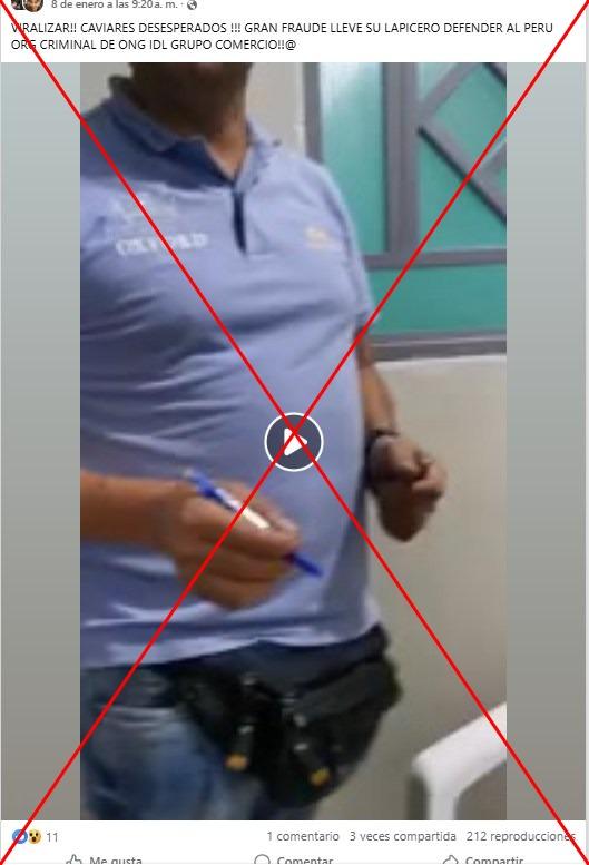 “Viralizar. Caviares desesperados. Gran fraude. Lleve su lapicero (para) defender al Perú”, se lee en el mensaje con el que se comparte la secuencia en Facebook (1, 2).
