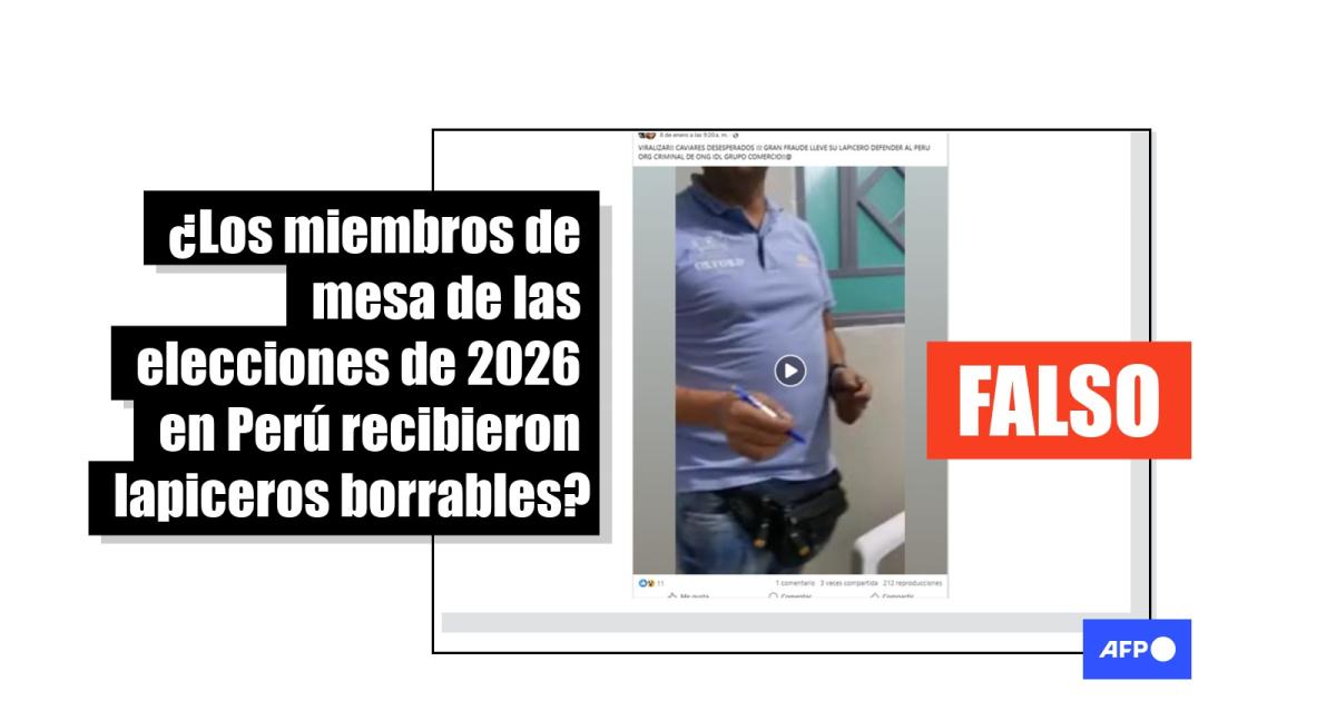 “Es falsa la información que señala que los miembros de mesa entregarán lapiceros con tinta borrable o sensible al calor”, dijo la ONPE tras una consulta de AFP Factual el 13 de enero de 2026.