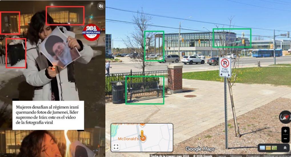El vídeo de una mujer que quema una foto de Alí Jamenei fue grabado en Canadá, no en Irán