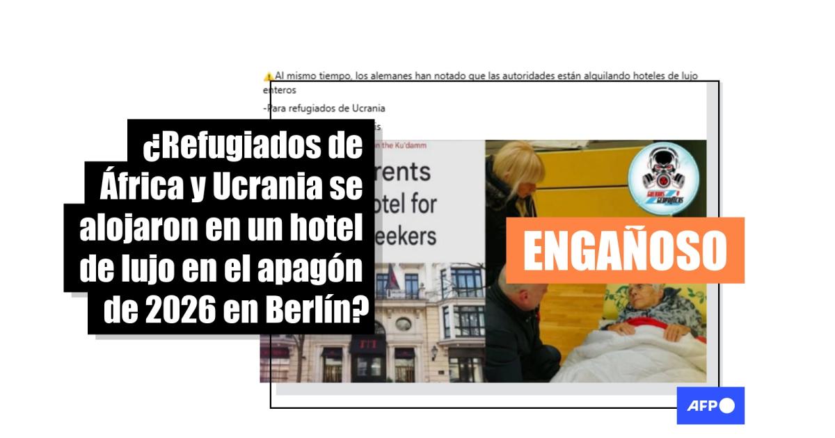 El hotel Dormero, citado en las publicaciones, calificó las afirmaciones virales como “incorrectas” en un comunicado dirigido a la AFP el 14 de enero de 2026. “Nos complace confirmar que, en conexión con el corte de electricidad del 3 de enero de 2026, no se alojó a ningún refugiado en el DORMERO Hotel Berlin Ku’damm”, subrayó.