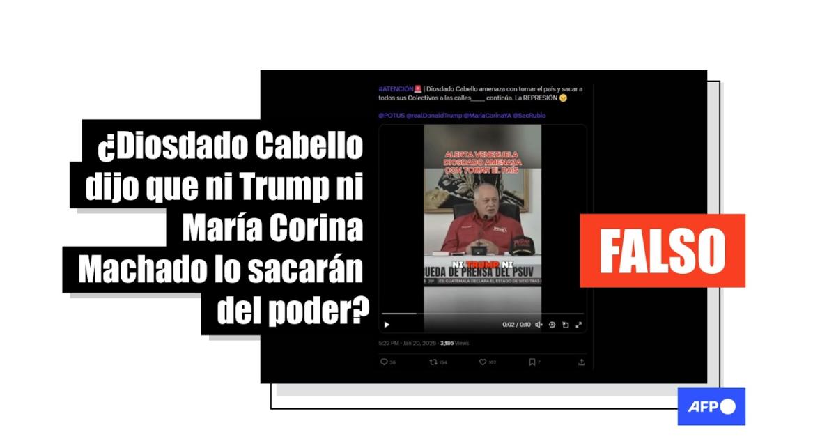 Miembros de colectivos armados en Venezuela buscan responsables de la “traición” que llevó a la captura de Nicolás Maduro por militares estadounidenses el 3 de enero de 2026. En ese contexto, se difunde un video en el que el ministro del Interior, Diosdado Cabello, dice que ni Donald Trump ni María Corina Machado le quitarán el poder y que de ser necesario sacará a “todos los colectivos a las calles”. Pero la secuencia, compartida más de 10.000 veces en redes sociales, corresponde a una rueda de prensa cuyo audio fue manipulado con inteligencia artificial (IA).