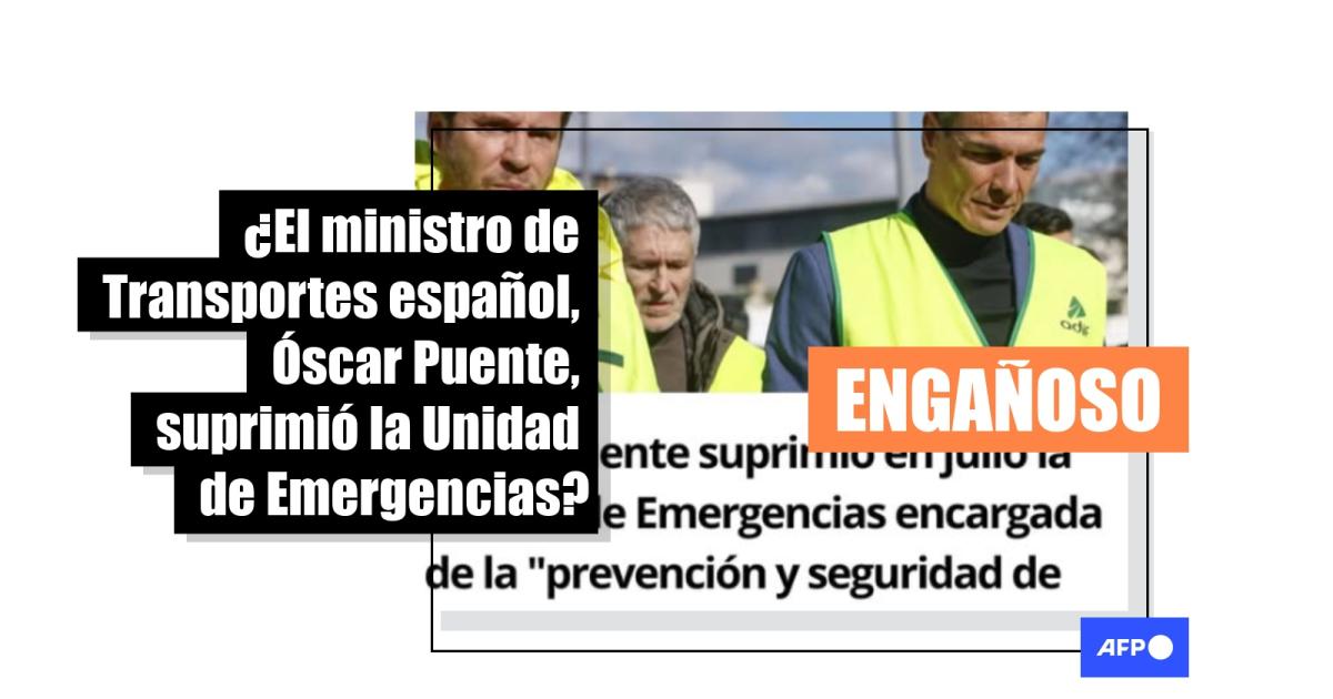 El accidente de tren de Adamuz, en España, que causó la muerte de 45 personas, el 18 de enero de 2026, ha generado un debate sobre el mantenimiento y seguridad del sistema ferroviario español. En este contexto, mensajes compartidos 14.000 veces por usuarios en redes sociales afirman que el ministro de Transportes, Óscar Puente, suprimió la “Unidad de Emergencias” encargada de la “prevención y seguridad de infraestructuras”. Pero el organismo, que no tenía esas funciones antes, solo cambió de nombre e incluyó nuevas tareas conforme a la nueva denominación.