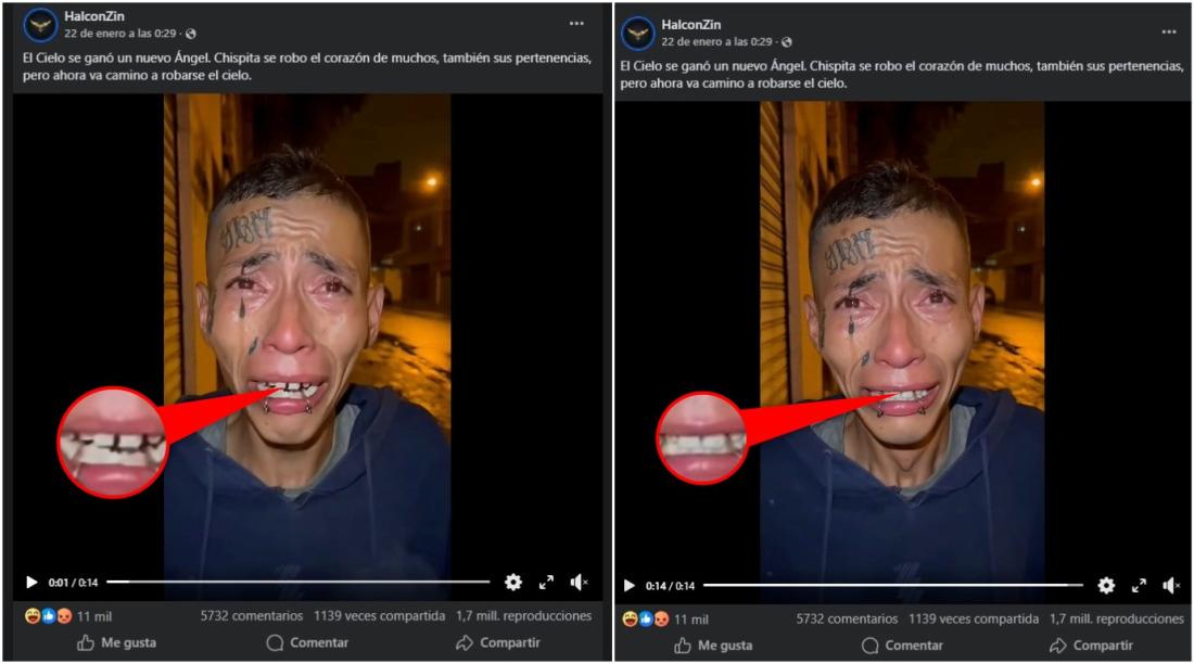 La misma búsqueda también llevó a un video publicado en Facebook el 22 de enero de 2026 por la página “HalconZin”, en el que se ve a la misma persona llorando de la imagen viral.