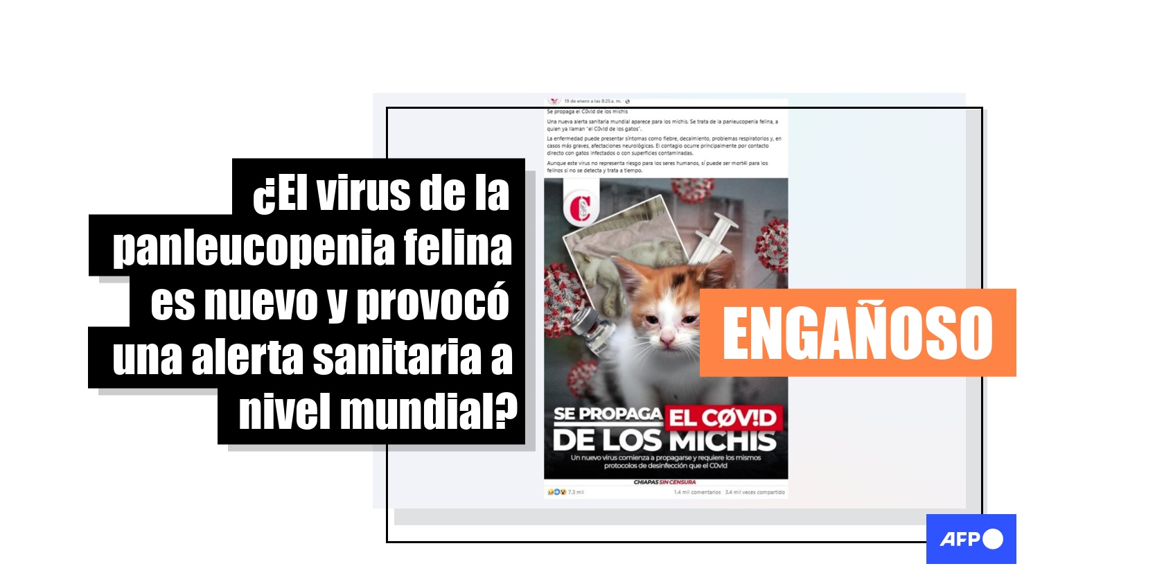 La panleucopenia felina es una enfermedad viral contagiosa de los gatos. Desde enero de 2026 circulan publicaciones en redes sociales, compartidas más de 3.000 veces, que afirman que ese padecimiento se trata de un “nuevo virus mortal” que ha provocado una “alerta mundial” y lo comparan con el covid-19 de los felinos. Pero es información engañosa. En realidad, es un parvovirus descubierto desde 1928, que se puede tratar y prevenir mediante la vacunación. Además, no existe una alerta de organizaciones internacionales por un brote de ese virus.