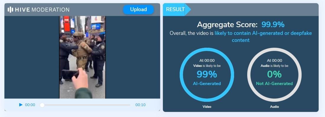 Una evaluación similar con la herramienta Hive Moderation arrojó un 99% de posibilidad de que la secuencia “contenga contenido generado con IA”.