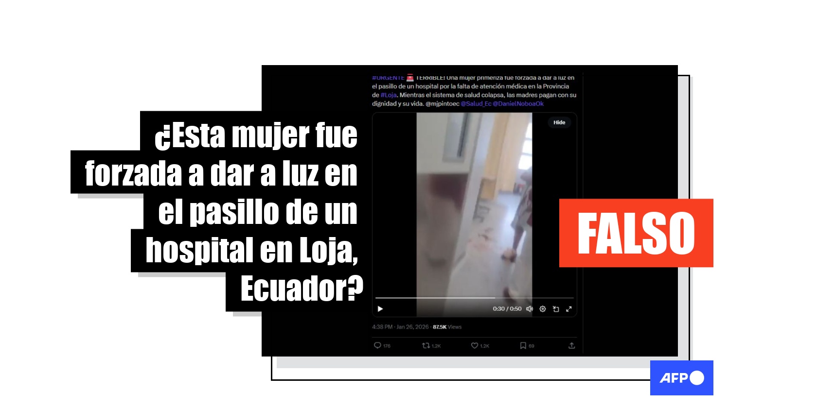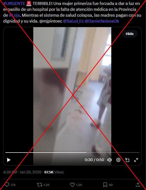Desde 2025, Ecuador atraviesa una crisis de salud pública que ha ocasionado que el gobierno declare emergencia para el abastecimiento de medicamentos e insumos hospitalarios en el país. En ese contexto, desde el 26 de enero de 2026, se ha difundido un video de una mujer que dio a luz en el pasillo de un hospital, supuestamente en la provincia de Loja, por falta de atención médica. Sin embargo, la secuencia, compartida más de 1.200 veces en redes sociales, se grabó en Perú.