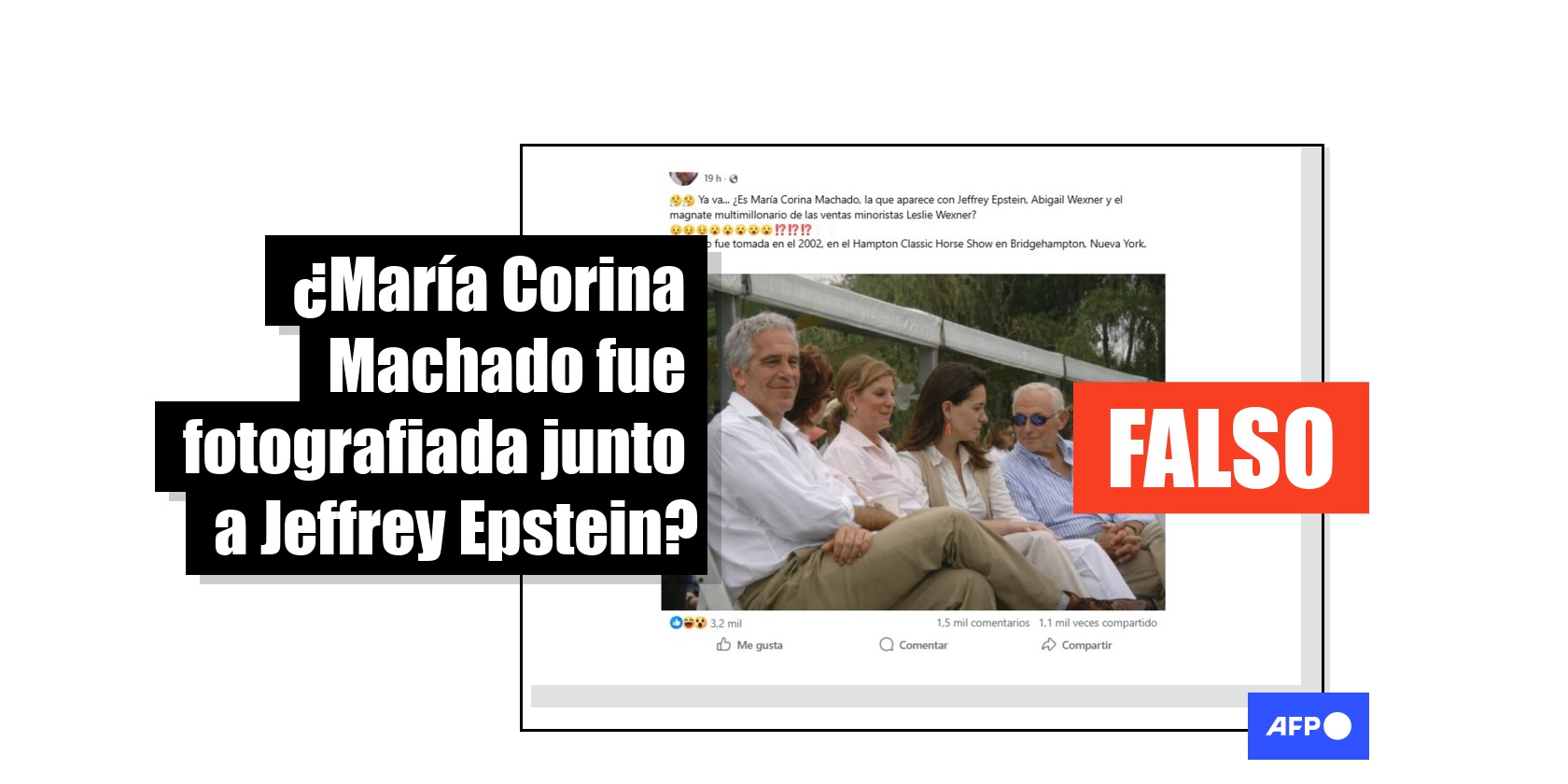 El 2 de febrero de 2026 fueron publicados nuevos documentos relacionados al caso del delincuente sexual estadounidense Jeffrey Epstein. En ese contexto, más de 5.000 usuarios en redes sociales han difundido una imagen donde supuestamente el norteamericano está acompañado por la líder opositora venezolana María Corina Machado y el empresario Leslie Wexner. Sin embargo, la fotografía fue manipulada: en la original no aparece Machado.