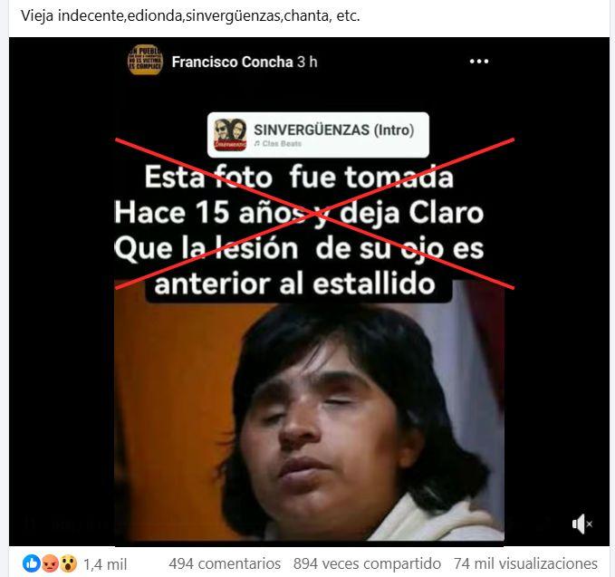 En enero de 2026, Gendarmería de Chile, autoridad de las prisiones, otorgó el beneficio de salida dominical al policía que cegó con una bomba lacrimógena a Fabiola Campillai, símbolo de la revuelta social de 2019 y actual senadora. En este contexto, usuarios en redes sociales han compartido más de 3.000 veces una imagen de la congresista invidente, con la afirmación de que es una foto “tomada hace 15 años”, lo que demostraría que sus lesiones oculares son anteriores al estallido. Pero esto es falso: la imagen utilizada es de agosto de 2020, nueve meses después del incidente.