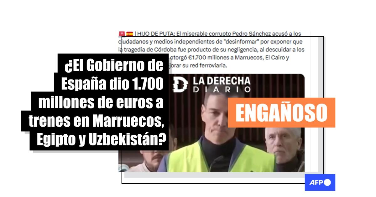 El 18 de enero de 2026, 46 personas fallecieron en un accidente ferroviario en Adamuz, en España. Tras la tragedia, usuarios en redes sociales aseguraron que el Gobierno “otorgó” más de 1.700 millones de euros para Egipto, Marruecos y Uzbekistán. Esa afirmación y otras semejantes se difunden más de 2.000 veces. Sin embargo, el monto consiste en créditos reembolsables para ayudar a la internacionalización de empresas españolas.