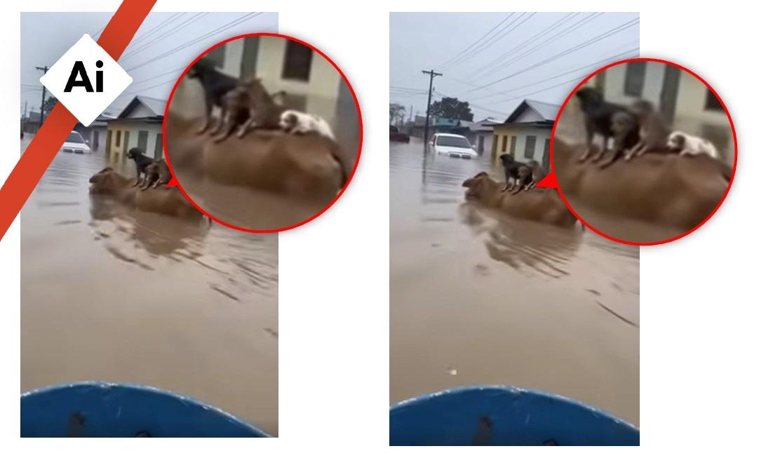 El video de una vaca con varios perros en su lomo durante inundaciones en Colombia fue creado con IA