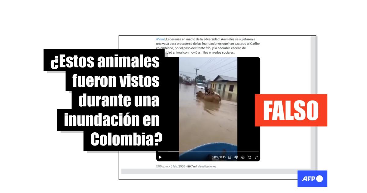 El norte de Colombia enfrenta una emergencia en febrero de 2026 debido a fuertes lluvias asociadas a un frente frío proveniente del Caribe. En medio de esta situación, se comparte más de 8.000 veces en redes sociales un video presuntamente grabado en una de las regiones afectadas, en el que se observa a una vaca con cuatro perros sobre su lomo, en medio de una calle inundada. Sin embargo, la secuencia muestra varias inconsistencias y tiene indicios de haber sido creada con inteligencia artificial (IA).