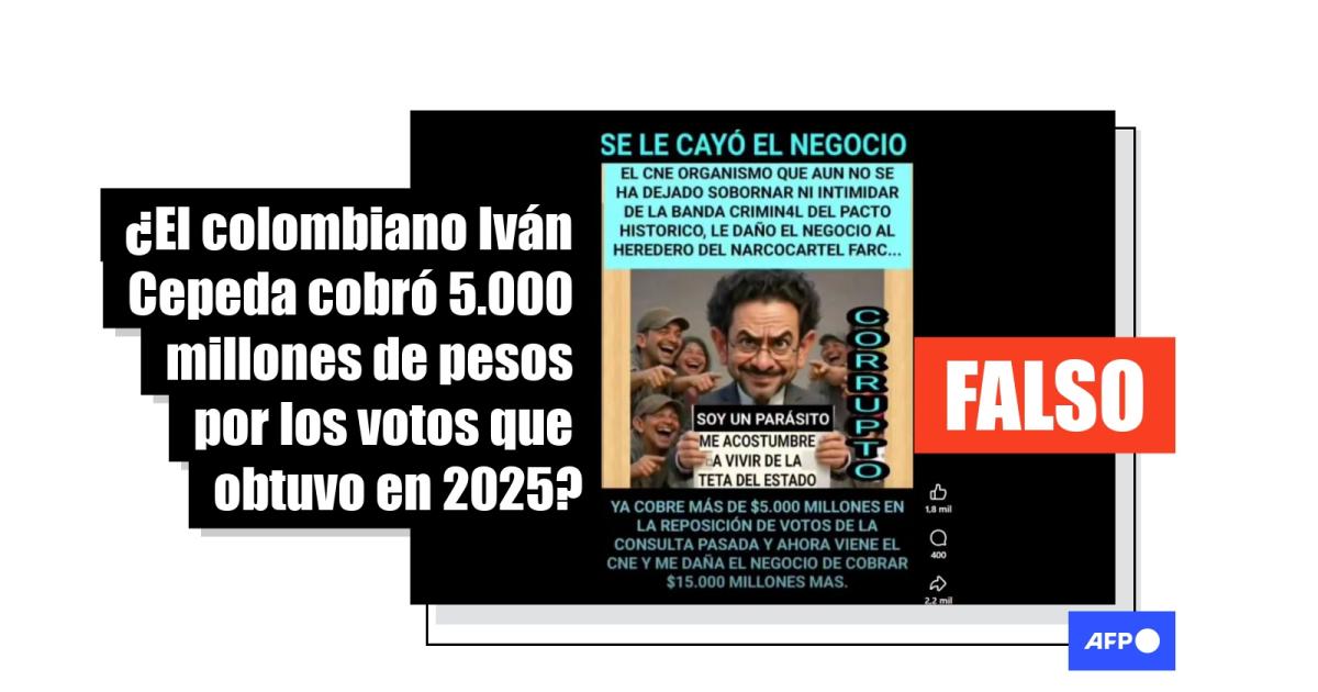 Una imagen presenta una cifra exagerada sobre la reposición de votos de Iván Cepeda en Colombia