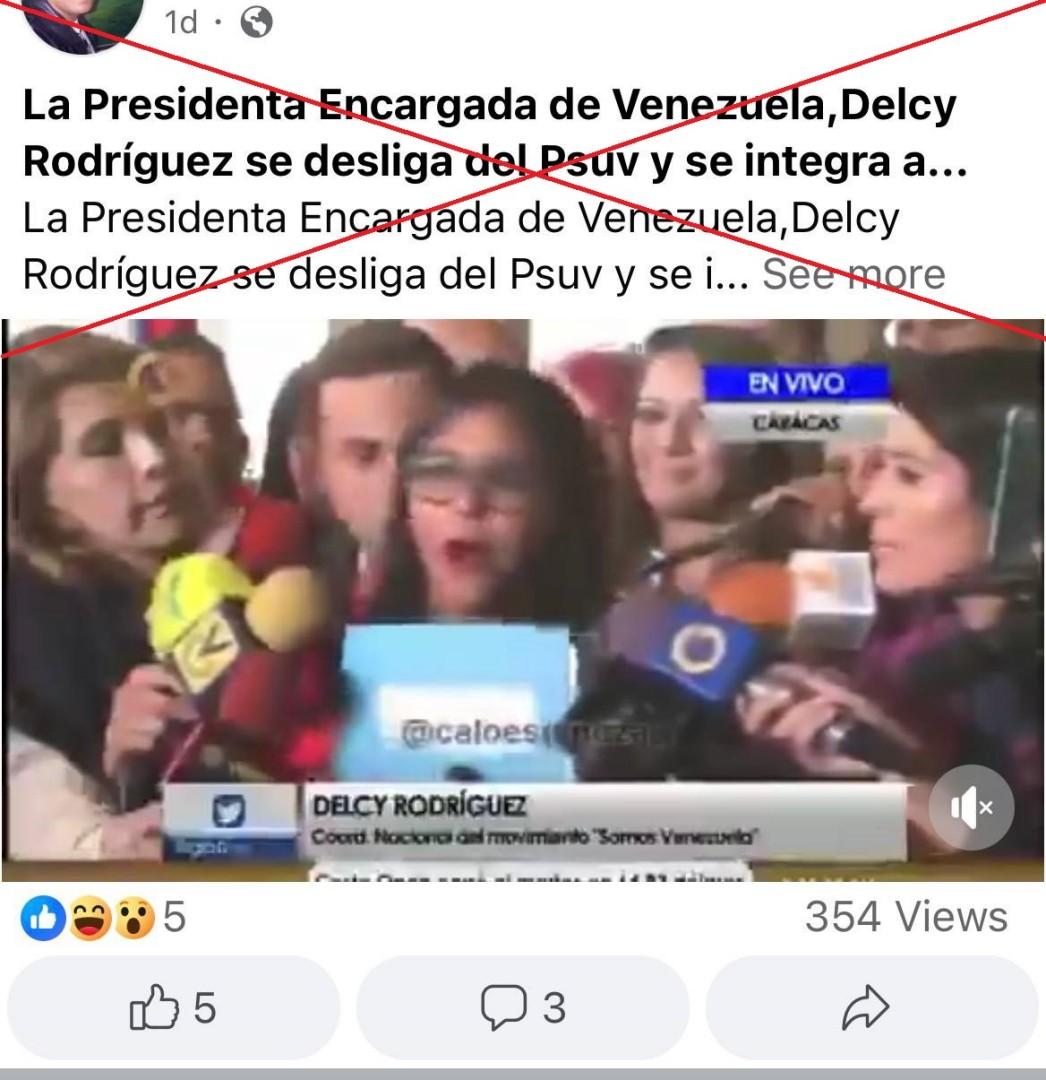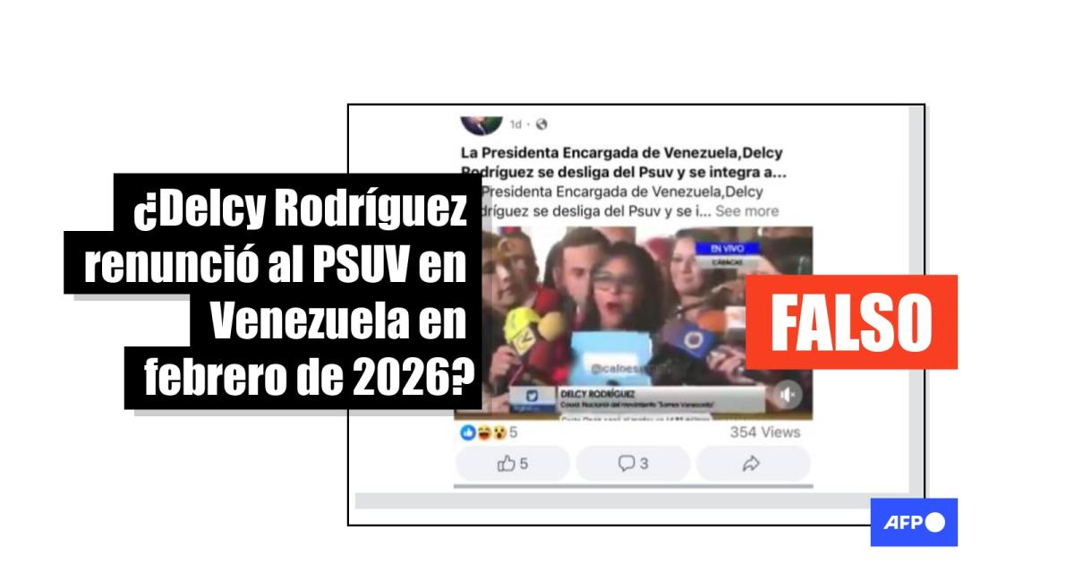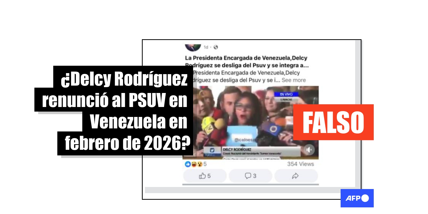 Delcy Rodríguez asumió el poder de forma interina en Venezuela tras la captura de Nicolás Maduro, el 3 de enero de 2026, y bajo el tutelaje de Estados Unidos. Desde el 10 de febrero, más de 5.000 usuarios de redes sociales han compartido un video en el cual Rodríguez se desliga del partido oficialista PSUV, junto a la afirmación de que “traiciona” al chavismo. Pero, en realidad, el video data de 2018, cuando la funcionaria dejó brevemente la tolda para apoyar a Maduro desde otro movimiento, pero luego regresó. Hasta esta publicación, no hay registro de una nueva salida suya del PSUV.