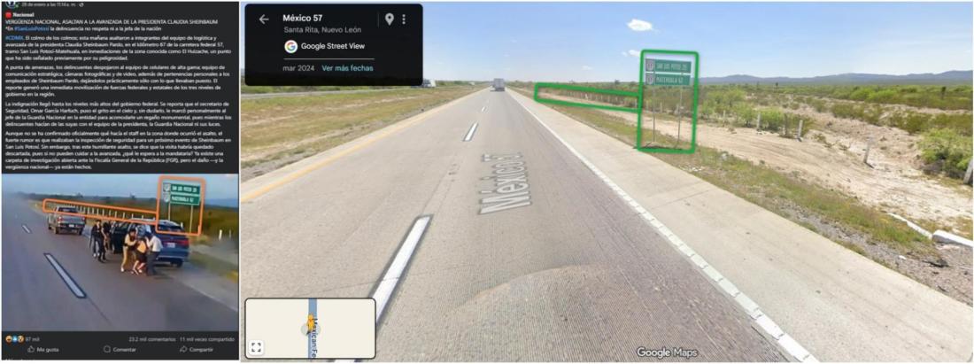 Una comparación muestra coincidencias entre una de las imágenes virales y una vista de esa vía en Google Street View.