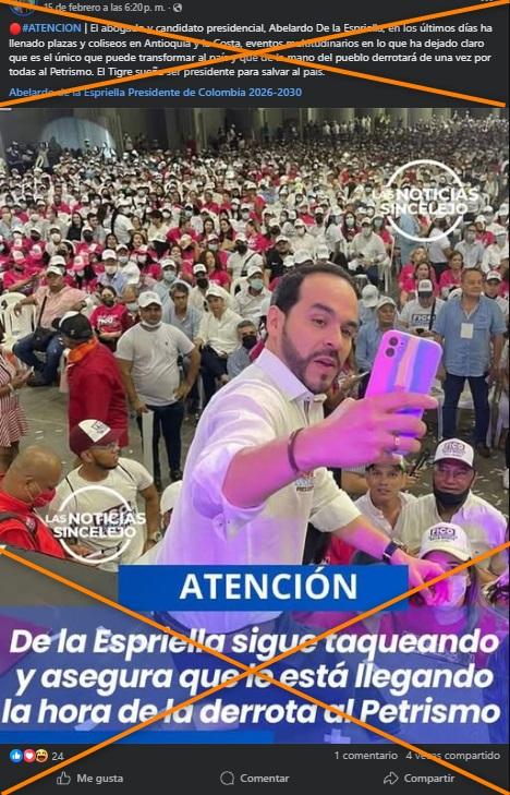 La foto del colombiano De la Espriella con una multitud es del mitin de otro político en 2022