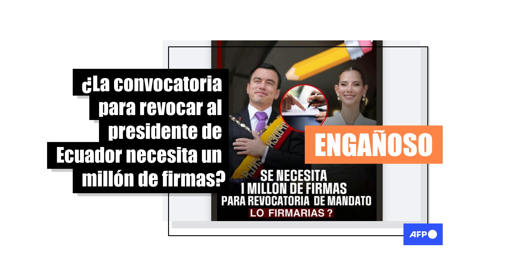 “Se necesita 1 millón de firmas para revocatoria de mandato [de Noboa]. Lo firmarías?”, afirma una imagen compartida en Facebook (1, 2), TikTok (1, 2) y X.