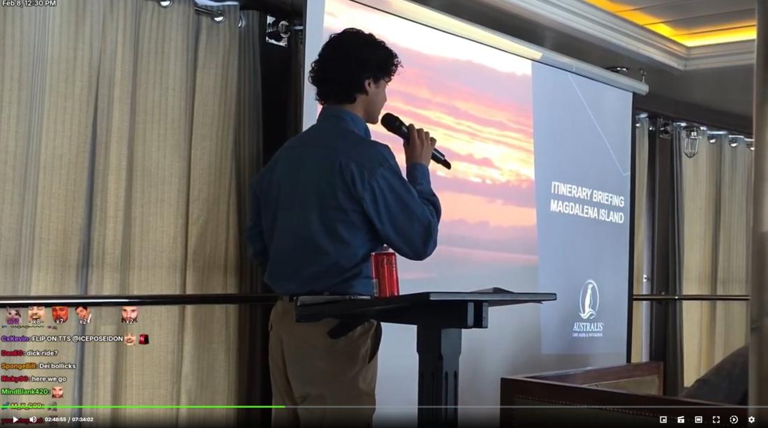 La transmisión original también incluye imágenes de una presentación de un operador turístico que describe un itinerario que incluía la Isla Magdalena, ubicada en territorio chileno en el Estrecho de Magallanes.