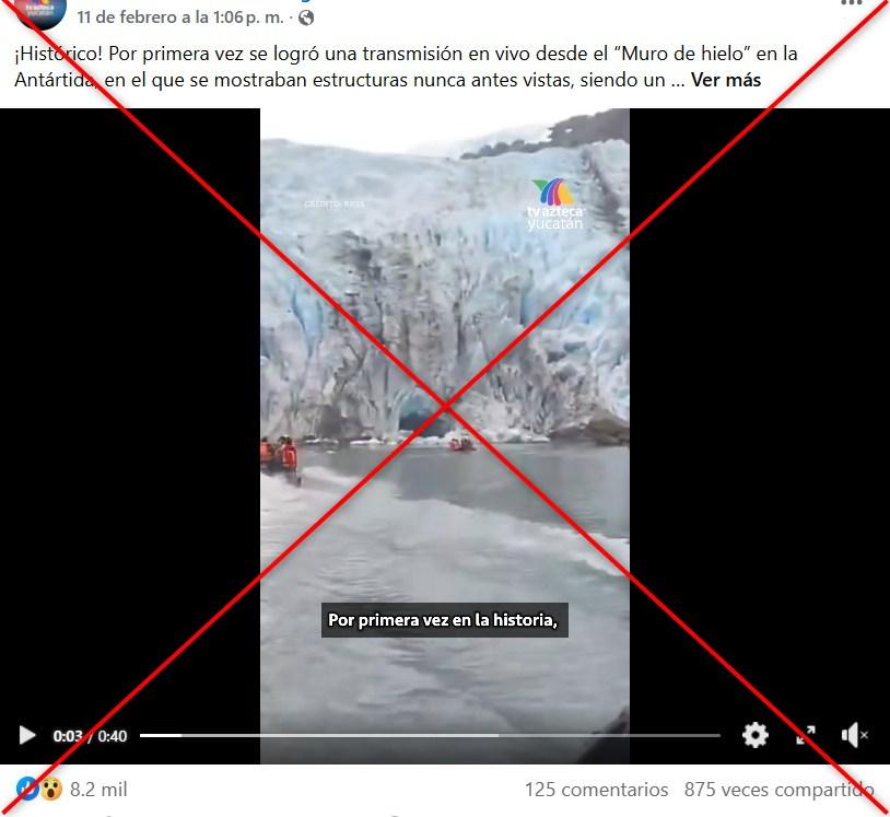 “¡Histórico! Por primera vez se logró una transmisión en vivo desde el “Muro de hielo” en la Antártida, en el que se mostraban estructuras nunca antes vistas, siendo un hecho transcendente para la ciencia”, dicen publicaciones en Facebook, Instagram y TikTok.
