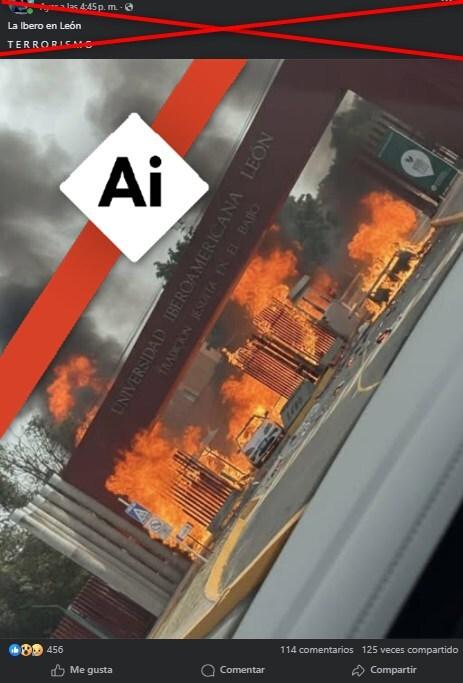 La imagen de un incendio en una universidad en Guanajuato, México, fue hecha con IA
