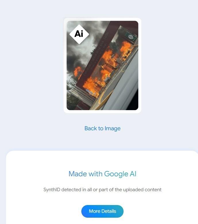 AFP Factual sometió la imagen a un análisis con SynthID Detector, que identificó marcas de agua que indican que el contenido fue creado con la IA de Google.