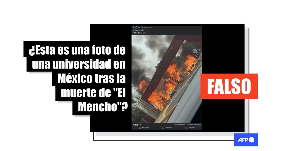 El ejército mexicano abatió el 22 de febrero de 2026 al narcotraficante Nemesio Oseguera, alias “El Mencho”, en un operativo en Jalisco (oeste) que desató una ola de violencia con bloqueos carreteros e incendios de vehículos y negocios. Desde entonces, una imagen de la Universidad Iberoamericana en llamas en León, Guanajuato (centro), ha sido compartida más de 1.000 veces en redes sociales, con comentarios de usuarios que lo relacionan con ese estallido. Sin embargo, la imagen fue generada con inteligencia artificial y la institución negó que se registrara un incendio en sus instalaciones.