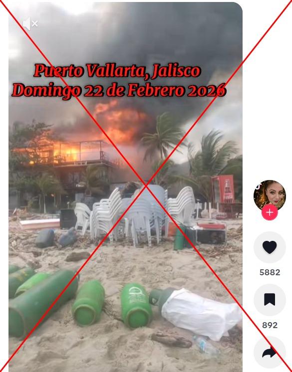 Tras la muerte del narcotraficante Nemesio Oseguera “El Mencho”, el 22 de febrero de 2026, se desató una ola de violencia en distintos puntos de México. Desde entonces, más de 8.000 usuarios en redes sociales han compartido un video de una edificación incendiándose señalando que es Puerto Vallarta, en el estado mexicano de Jalisco. No obstante, el registro data del 20 de febrero y el siniestro ocurrió en Mendihuaca, una zona turística del norte de Colombia.