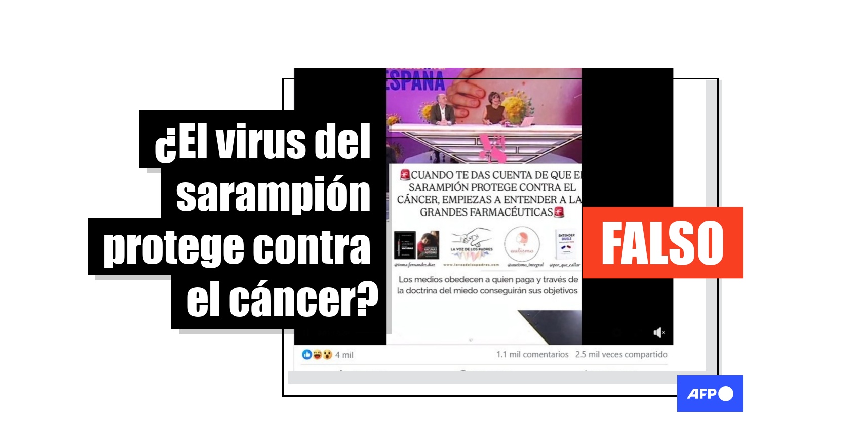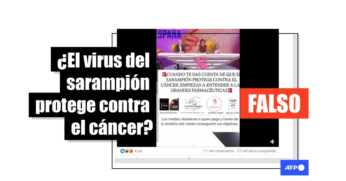 El sarampión ha resurgido en varios países de América con México a la cabeza al registrar más de 9.000 casos y 31 muertes entre 2025 y 2026. Mientras, en febrero de 2026, circulan en redes sociales imágenes desincentivando la vacunación porque supuestamente el virus del sarampión “protegería” contra el cáncer. Expertos en salud consultados por la AFP señalan que estas afirmaciones, compartidas más de 4.000 veces, tergiversan la viroterapia oncolítica, que consiste en probar la eficacia de virus modificados para destruir células cancerosas. Contraer el virus silvestre del sarampión puede ser letal.