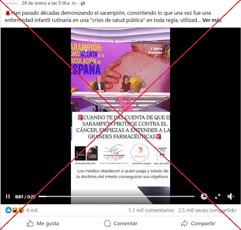 Mientras publicaciones como esas se viralizan en redes sociales, la población de América ha sido afectada por una ola de contagios de sarampión desde 2025. De las 14,891 personas infectadas, el 88 por ciento no estaban vacunadas o sus antecedentes de vacunación son desconocidos, según la Organización Panamericana de la Salud (OPS).