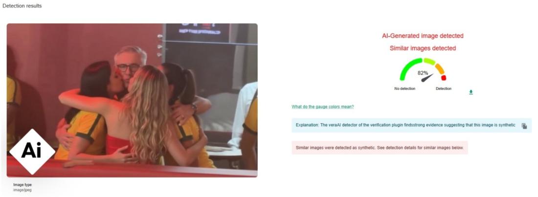 Un análisis con la herramienta InVID-WeVerify arrojó que hay un 82% de probabilidades de que la imagen haya sido creada con inteligencia artificial.