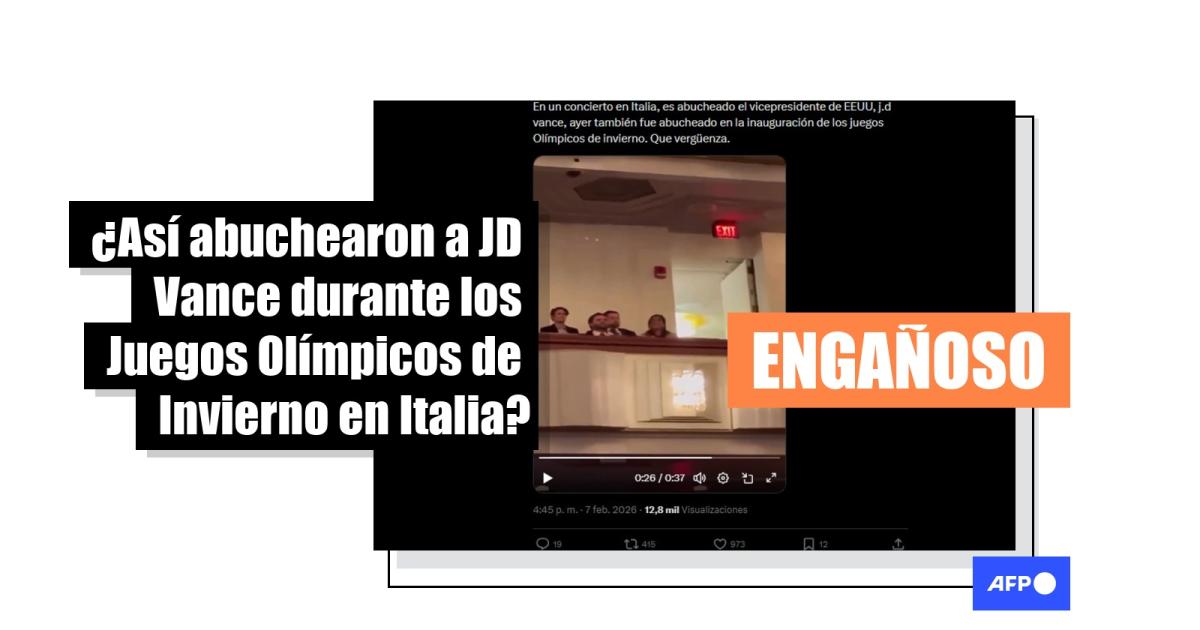 El vicepresidente estadounidense, JD Vance, fue abucheado por una multitud durante la ceremonia de apertura de los Juegos Olímpicos de Invierno el 6 de febrero de 2026 en Milán, Italia. Poco después, un video del político siendo increpado por el público en una sala de conciertos fue vinculado a lo sucedido en la justa deportiva y compartido más de 3.000 veces en redes sociales. Sin embargo, las imágenes se registraron en marzo de 2025, cuando una multitud lo recibió con gritos en el Trump-Kennedy Center en Washington.