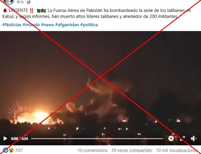 Sin embargo, el vídeo viral no corresponde a un bombardeo de Pakistán en la capital de Afganistán.