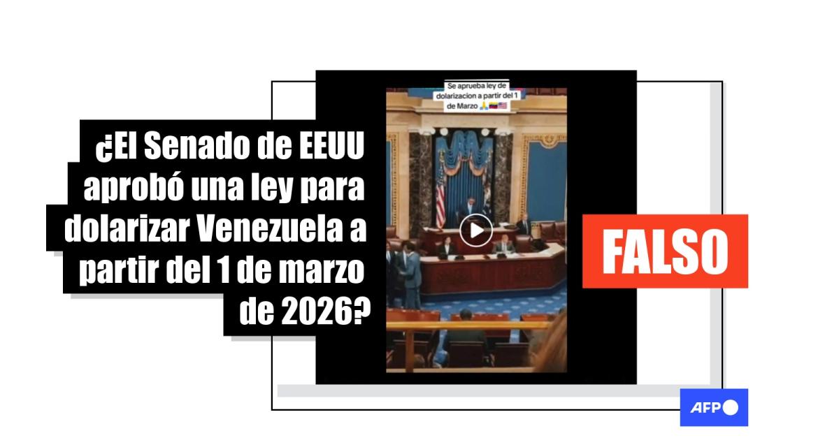 El presidente estadounidense, Donald Trump, dice haber quedado a cargo de Venezuela tras la detención de Nicolás Maduro, pero eso —al momento— no ha implicado la dolarización de la economía venezolana. De hecho, un video en el que el Senado norteamericano aparecería aprobando la moción fue creado con inteligencia artificial (IA). Aunque el contenido se compartiera más de 300.000 veces en redes sociales desde el 16 de febrero de 2026, no hay registro de la supuesta norma en páginas oficiales.