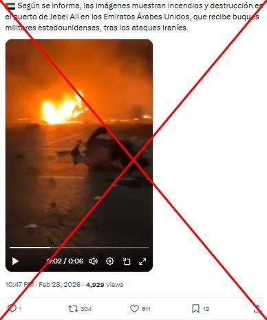 El 1 de marzo, tras la viralización de las imágenes, la Oficina de Medios del gobierno de la ciudad confirmó en un mensaje en X daños en el puerto de Jebel Ali tras un ataque de misiles iraní, y agregó: “Las autoridades han instado al público a no difundir un video antiguo del incendio en el Puerto de Jebel Ali del 7 de julio de 2021, ya que podría difundir información engañosa”.
