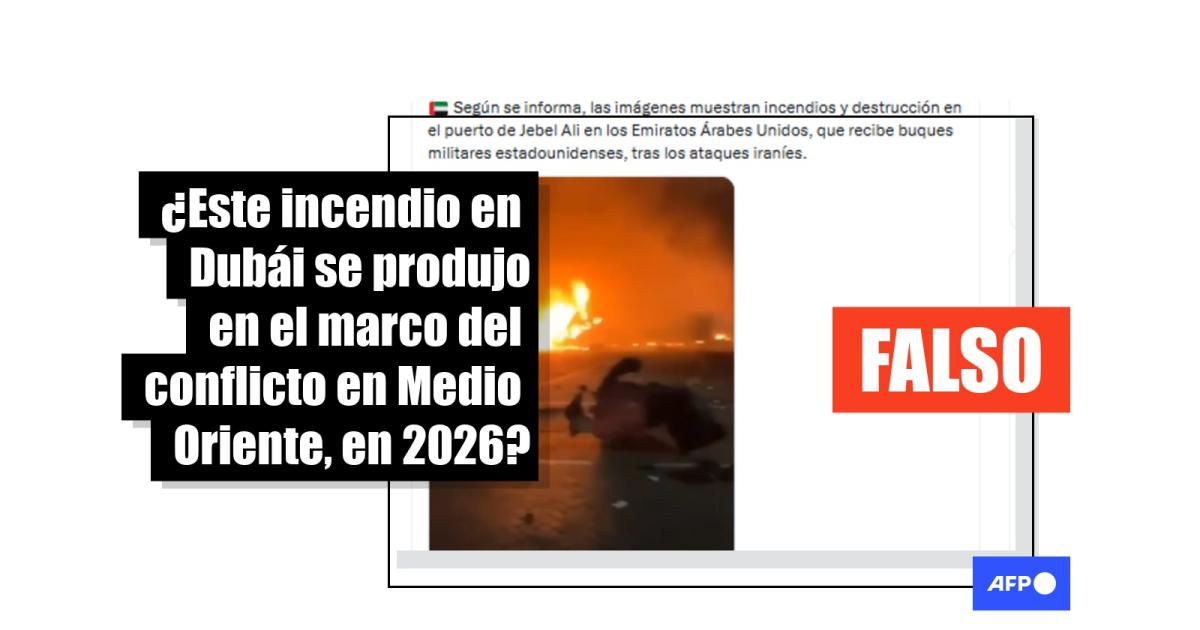 Dubái ha registrado varias explosiones vinculadas a la guerra en Medio Oriente, desencadenada por los ataques conjuntos de Estados Unidos e Israel contra Irán el 28 de febrero de 2026. El puerto de Jebel Ali, en la ciudad emiratí, figura entre los puntos afectados. En ese marco, un vídeo que mostraría los daños de ese lugar se ha compartido casi 1.000 veces en redes sociales. Sin embargo, la grabación es de la explosión en un buque portacontenedores en 2021.