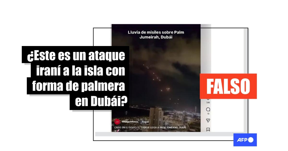 La guerra desatada en Medio Oriente por los ataques de Estados Unidos e Israel contra Irán, en febrero de 2026, se ha extendido a varios países del golfo Pérsico. Dubái, centro empresarial de la región, ha visto explosiones en hoteles lujosos y torres de apartamentos. Pero un video compartido más de 20.000 veces en redes sociales no muestra un bombardeo sobre Palm Jumeirah, la famosa isla con forma de palmera de esa ciudad emiratí. Las imágenes circulan en internet desde octubre de 2024, cuando Irán disparó proyectiles contra Israel.