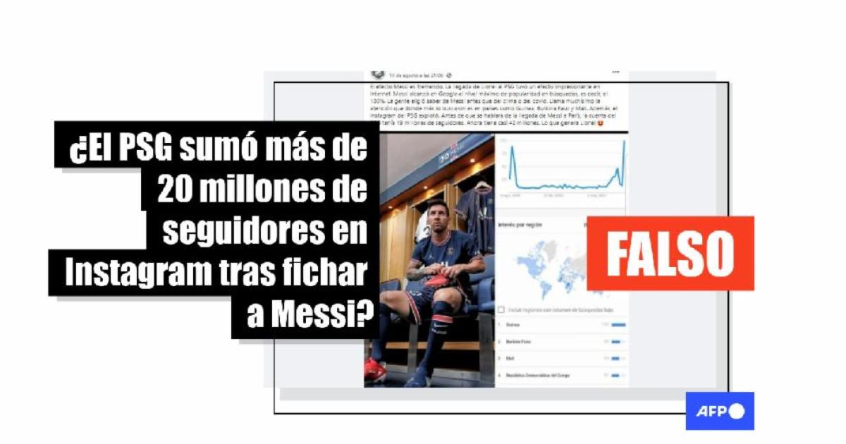 Usando datos de CrowdTangle, una herramienta de monitoreo de redes sociales, la AFP encontró que la cuenta de Instagram del PSG ganó alrededor de tres millones de seguidores en las 24 horas posteriores al fichaje de Messi, el 10 de agosto pasado, muy lejos de los 23 millones que mencionan las publicaciones.