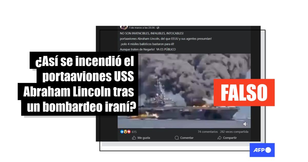 Las autoridades iraníes afirmaron haber atacado el portaaviones estadounidense USS Abraham Lincoln el 1 de marzo de 2026, durante la guerra en Medio Oriente. Desde entonces, el video de un barco en llamas con el mensaje de que muestra los daños producidos por el bombardeo iraní fue replicado más de 1.000 veces en redes sociales. Pero las imágenes circulan desde 2025 y tienen rasgos de haber sido generadas artificialmente. Por su parte, el gobierno de Estados Unidos negó haber sufrido ese ataque en su portaaviones.
