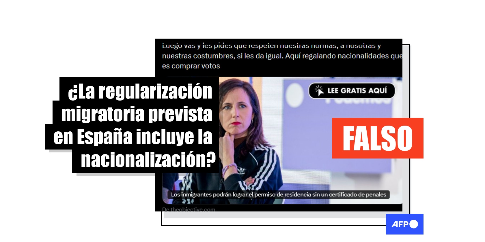 La regularización y la nacionalización “son figuras jurídicas distintas y no comparables”, explicó a AFP Factual el 2 de febrero de 2026 María Eugenia Blasco, socia de Inmigración y Movilidad Internacional en AGM Abogados. Y aclaró: “La regularización no implica automáticamente la nacionalidad ni acorta los plazos legales para solicitarla”.