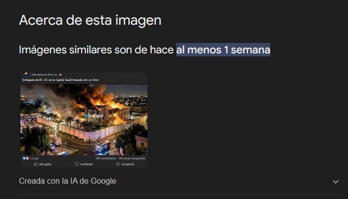 Una foto de un incendio en la embajada de EEUU en Arabia Saudita fue hecha con IA