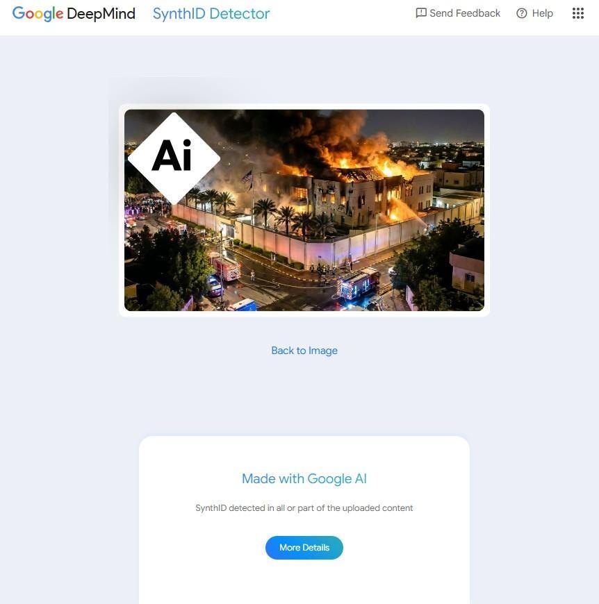 La AFP también sometió el material a la herramienta SynthID, desarrollada por Google DeepMind para identificar el uso de su propia IA, que detectó la presencia de la tecnología "en todo o parte del contenido".