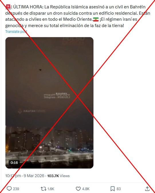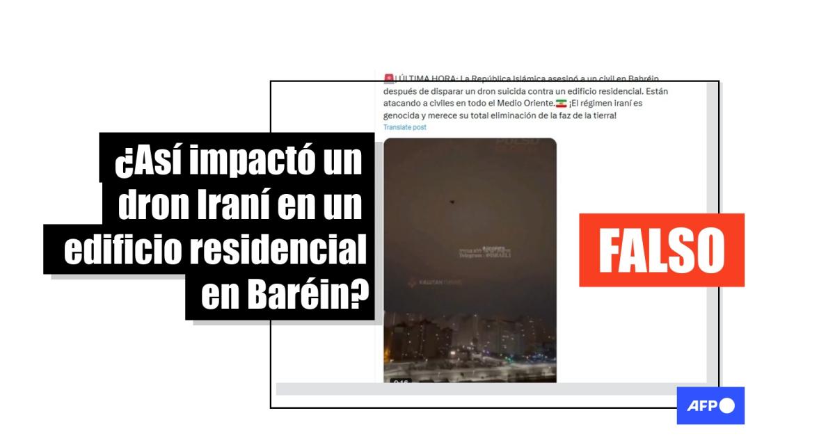 Desde inicios de la guerra en Medio Oriente, el 28 de febrero de 2026, se han reportado explosiones en Baréin. A inicios de marzo, comenzó a circular en redes sociales un video que muestra el impacto de un supuesto dron iraní en un edificio residencial en Baréin. Pero la secuencia, compartida más de 2.300 veces, corresponde a un ataque ruso contra una residencia en Kiev el 9 de enero.