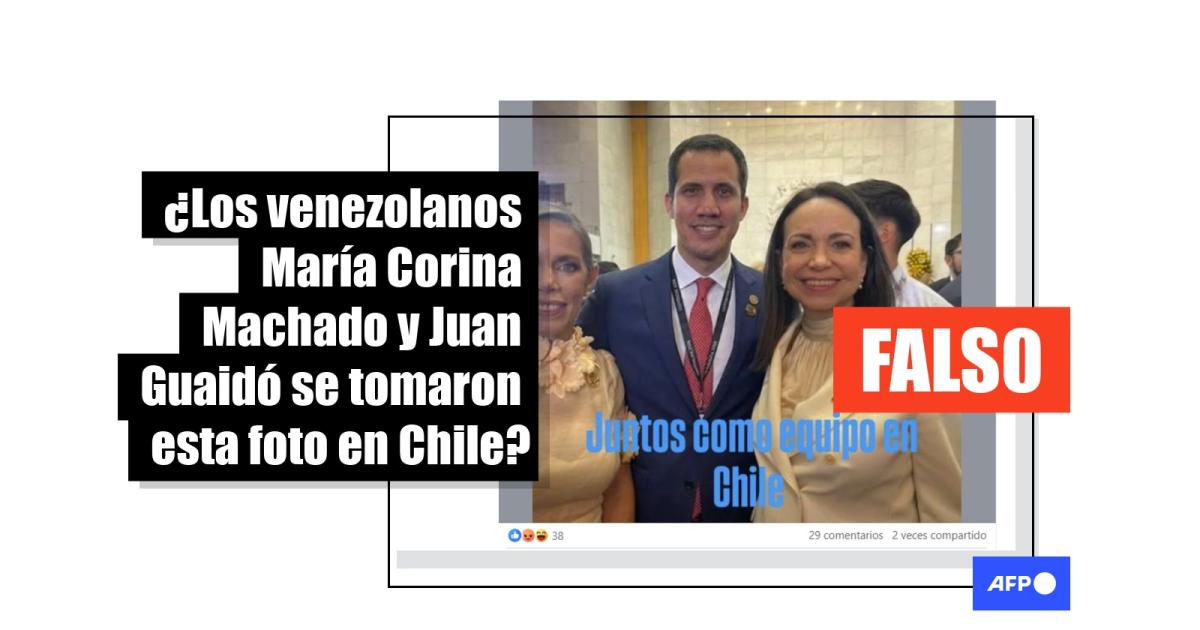 La líder opositora venezolana María Corina Machado y el exparlamentario Juan Guaidó participaron en la juramentación de José Antonio Kast como presidente de Chile, el 11 de marzo de 2026. Tras la ceremonia, circuló una foto, compartida más de 300 veces en redes sociales, de los dos dirigentes opositores juntos, pero la imagen fue manipulada con inteligencia artificial (IA). En la publicación original, Machado aparece con el mandatario paraguayo, Santiago Peña.