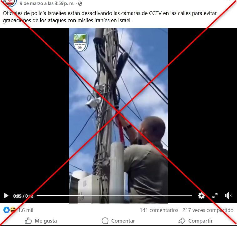 Irán e Israel mantienen amenazas de nuevos ataques tras la ofensiva lanzada sobre Teherán en febrero de 2026. En marzo, usuarios en redes sociales han compartido más de 1.500 veces un video que muestra a una persona que tumba una cámara de vigilancia de un poste, junto con la afirmación de que el gobierno ordenó quitar estos dispositivos para censurar los estragos de la guerra. Pero es falso. La grabación es de 2025 y en realidad muestra a la policía desmantelando cámaras instaladas por organizaciones criminales en el espacio público.